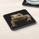 A grumpy looking American Toad (Bufo americanus) is looking out at you from this set of cork coasters. This small amphibian is brown with black, gold olive green and orange coloration. His warts distinguish him from his frog neighbours. Although hatched in the water of ponds, rivers, lakes or streams, the tadpoles soon move to land where the toads live their adult lives. His startling call is a long screech. He looks quite fierce but is actually a gentle little guy who eat lots of garden pests including insects and slugs.