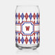 Argyle goes 8-bit and Americana with this red, white, and blue colour scheme. A light tan contrast stitch adds a touch of retro feel. Customise the monogram with your initial to make this drinkware uniquely your own. This glassware is also available in stemless wine and rocks glass styles.