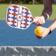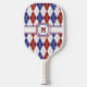 Argyle goes 8-bit and Americana with this red, white, and blue colour scheme. A light tan contrast stitch adds a touch of retro feel. Customise the monogram with your initial to create a unique paddle for your pickleball games.