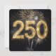 The golden number 250 is illuminated by bright fireworks that explode in various colours against a dark sky, creating a festive atmosphere.