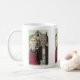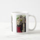 A cute fun American Gothic cat character Meowican Americat parody painting marker art cartoon spoof epic classic art rural farm life museum worthy cheeky fun humour cartoon style husband wife dad and daughter folk art design illustration ceramic coffee, tea or coca mug. Get a funny Meowican Gothic cup today.