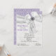Beautiful lavender and white coloured bridal shower invitation, with a white lace like design, over a ivory coloured background. A lavender background, with white lace overlay, at the top of the invitation and the reverse side. Graphics of a white ribbon and bow, at the top, is decorated with a pretty silver tone and amethyst like jewel. Personalise all the text to suit your special event. Lovely keepsake invitation the bride to be will love.