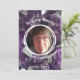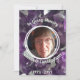 This card is designed to honour the memory of someone at a Memorial Service or a Funeral. The photo is set up as a template to be replaced with the photo of the one being remembered. A photo of amethyst crystals is the background for this announcement. "In Loving Memory" curves around the photo. The person's name curves around the bottom of the photo. Across the bottom of the card are the birth year and death year. This card can be handed out at a Memorial Service or may be sent to those who cannot attend the service. On the back is a template for date, time and place of the memorial service and program details, list of pall bearers, and a scripture or quote. The words are set up to be personalised. The design may also be personalised with your own photo cutout if desired. If you need help personalising, please contact me at jen@jenaleefamilystorykeeper.com