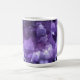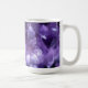 A detailed close-up of a cluster of amethyst crystals, displaying their characteristic purple hues, varied sizes and shapes, and reflective surfaces against a dark background.