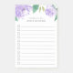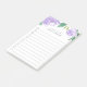 Chic personalised post-it note pad features a top border of watercolor peony flowers in pastel lavender purple with lush green leaves. Personalise with two lines of custom text in modern lettering; shown with "things to do" and your name. 11 lines with checkboxes help you keep track of all your important tasks!