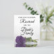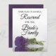 These oversized wedding place cards are designed to let your guests know which seats are reserved for the family of the bride. The elegant design features a beautiful amethyst purple coloured rose reflecting in a pool of water with waves and ripples. The customisable text reads: This seat is kindly reserved for the Bride's Family.