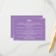 This Amethyst Elegance Details card features a rich purple background that perfectly coordinates with the Sofia and Adam wedding suite. The layout provides clear sections for reception, attire, accommodations, and website information, all rendered in clean white typography for easy reading. A delicate white leaf branch accent in the corner adds a touch of botanical charm to this sophisticated, modern design.