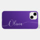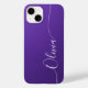 Amethyst Shimmer White Elegant Calligraphy Script Custom Personalised Name iPhone 14 Smart Phone Cases features a modern and trendy simple and stylish design with your personalised name in elegant hand written calligraphy script typography on a metallic amethyst shimmer background. Designed by ©Evco Studio www.zazzle.com/store/evcostudio