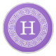 Amethyst Purple and White Greek Key Round Framed Initial Monogram