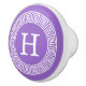 Amethyst Wht Greek Key Rnd Frame Initial Monogram Ceramic Knob