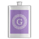 Amethyst Wht Greek Key Rnd Frame Initial Monogram Hip Flask