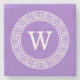 Amethyst Wht Greek Key Rnd Frame Initial Monogram Stone Coaster