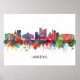 Elegant Watercolor Skyline of Amiens, a city in northern France, divided by the Somme River. It is known for the Gothic Amiens Cathedral and nearby mediaeval belfry