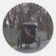 This sticker features a photograph of a horse & buggy in Lancaster County, Pennsylvania.