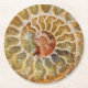 A photograph of the polished cross section of an ammonite fossil decorates this coaster.
