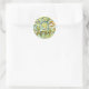 Painting of a yellow angel with the word "Amor". The Spanish word for love, "Amor", is painted in shades of pale yellows with blue and green accents. The acrylic painting has a textural contrast and sparkle from a light layer of glitter. Customise this inspirational word sticker with your own words to make special guardian angel decals for events!