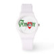 A beautiful white unisex watch with the bold Italian words, "Amore Gesù" (Love Jesus in English) written in the centre.