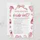 Add a fun, whimsical touch to your bridal shower with this Italian-inspired “Who Knows the Bride Best?” game card! Featuring hand-drawn pizza slices, rustic red gingham, and playful Italian charm, it's the perfect addition to your pasta, pizza, or vineyard-themed celebration.
