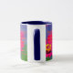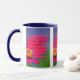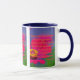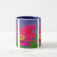 This two-tone mug showcases a design that features a Oliva print font with pink letters yellow outline featuring the "Amos 5:6" KJV bible scripture verse over a picture displaying a beautiful pink and yellow flower in front of a vibrant coloured background in this faith based theme. This verse is referencing the Book Of Amos 5th chapter showing the 6th verse in this bible scripture quote theme from the King James bible. The rim & handle are glazed in matching colours available in 11-ounce or 15-ounce sizes microwave and dishwasher safe ceramic construction.
