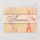 Soft subtle pastel colours of pink, peach and cream with Eiffel tower and two french hearts in the background and Amour in white script font. Perfect design for Paris France honeymooners, anniversaries, bon voyage or other special occasions. Great for anyone who loves France and the Eiffel tower.