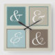 Ampersand Squares, Teal, Blue, Brown, Grey Square Wall Clock