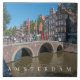 A beautiful view of people crossing a bridge in Amsterdam in the Netherlands printed on a souvenir ceramic tile.