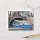 Amsterdam Canal Boat Tour Postcard. View on an Amsterdam bridge and canal with blue canal cruise tour boat and houses cityscape in Holland, The Netherlands postcard. This Amsterdam postcard is fully customisable, add your text and images! A beautiful city of Amsterdam Holland postcard, send it to your friends and/ or family members!