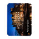 Rectangular photo magnet with the romantic old houses of Amsterdam city, built along Prinsengracht canal, with reflection of the lights in the still water at the beginning of the night in the capital of Holland with the text 'Amsterdam'.