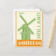 Anyone would love to receive this vintage Dutch travel poster postcard featuring a retro illustration of a windmill in the Netherlands -- Amsterdam, Holland!