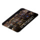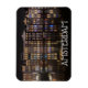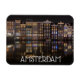 Rectangular photo magnet with traditional architecture canal houses with colourful lights and reflection in the water at night in the Red Light District in the city centre of Amsterdam, the Netherlands with the text 'Amsterdam'.