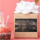 Rectangular photo sticker with traditional architecture canal houses with colourful lights and reflection in the water at night in the Red Light District in the city centre of Amsterdam, the Netherlands.