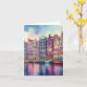 This greeting card features a watercolor portrait of Amsterdam, Netherlands.