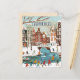 This travel postcard showcases a serene and warm illustration representing a cosy winter day at Amsterdam, Netherlands. It is a great and romantic postcard for travelers that plan to visit Amsterdam or for those who travelled Amsterdam and sending a postcard to their family or friends.
