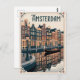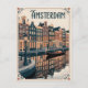 Explore the charm of Amsterdam with this vintage minimalistic postcard. Featuring iconic elements such as the city’s picturesque canals, historic gabled houses, and classic bicycles, the design uses clean lines and subtle hues to evoke a timeless elegance. Perfect for collectors, travelers, and fans of Amsterdam’s unique allure.