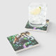 The coasters are gorgeous, a quality feel and heavy weight. They look like a precious archeological find. A rustic stone juxtaposed with a modern floral black and white print. I like the way the print goes slightly imperfect on the cut stone edges giving them a kind-of natural beauty.