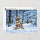 An acorn elf is biking to work in winter postcard