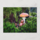 An acorn elf is resting under a mushroom - funny postcrossing postcard