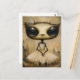 An adorable alien in a pink dress postcard