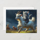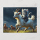 An adorable cute kitten riding a white goat in a lush pasture fantasy art