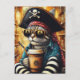 An Adorable Pirate Cat With A Coffee Postcard