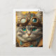 an adorable steampunk grey cat postcard
