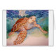 Loggerhead sea turtle, beautiful watercolor with a range of the spectrum of hues from the Florida coastline with this sea turtle shown above the diver heading towards the shore. Lovely patterns can be seen on the face,flippers and shell.