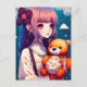 An Anime Girl with a Teddy Bear, Postcrossing Postcard, Postcard, Postcrosser, Postcrossing, anime postcard, girl, teddy bear, adorable postcard, generativecontent, AI Generation