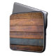 An antique wood wall texture background with metal laptop sleeve