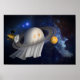 An artist's Halloween illustration of Cassini and Saturn featured with astronomy.