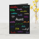 "An Aunt's Birthday" Card is a unique and lovely greeting for your Aunt's Birthday! With elegant typography displayed against a classic black background, this modern design will complement any card while expressing the meaning of Aunt in different languages from all over the world! Enjoy the beauty of this design as it is, or easily personalise by replacing text, fonts and background colours.