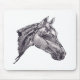 An artistic grayscale, graphic style image which depicts a portrait of a horse's head. Just an equine beauty.