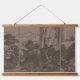 The polyester fabric displayed many wrinkles and several sharp creases throughout. At the bottom of the tapestry, I noticed a bulge in the fabric because it was not pulled tight enough before being connected to the wooden boards. It took me over an hour to spay water on the tapestry before putting it on an ironing board where I used a warm iron over a polyester cloth to remove the wrinkles and creases in the material. I was able to get out the wrinkles and creases that made that tapestry look as beautiful as its picture.
