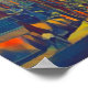 "An Evening on Broad Street" is a vibrant, colorful, retro-impressionist print, with at touch of downtown Americana featuring shops, drugstores, and the like. This mixed media print features rich blues, greens, and yellows.