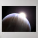 An extrasolar planet with its parent star peeking above its top edge featured with atmosphere.